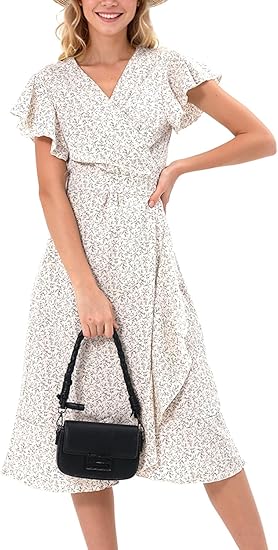 Summer Wrap Maxi Dress Casual Boho Floral V Neck Short Sleeve Ruffle Hem Split Beach Long Dresses