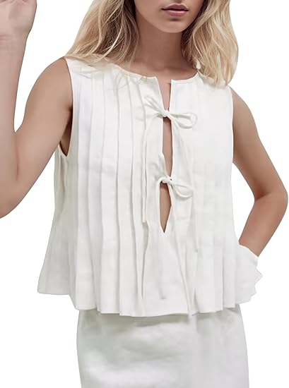 Women Y2K Tie Up Peplum Tank Tops Open Front Sleeveless Ruffle Hem Babydoll Shirts Summer Cute Going Out Vest Tops