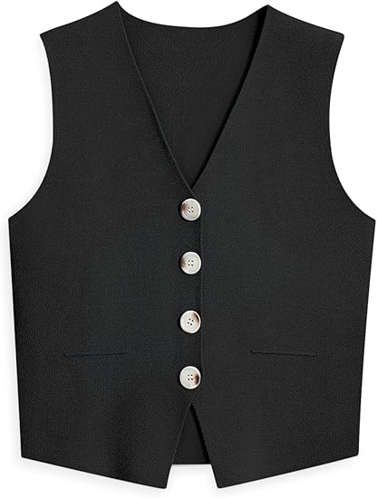 Business Casual Tops for Women 2024 Dressy Sleeveless Sweater Vests V Neck Button Down Cropped Tank Top